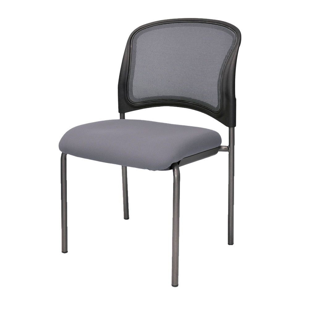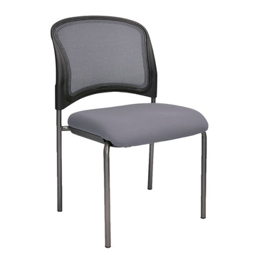 Silla multiusos con respaldo en mesh y asiento tapizado en tela; ideal para salas de espera.